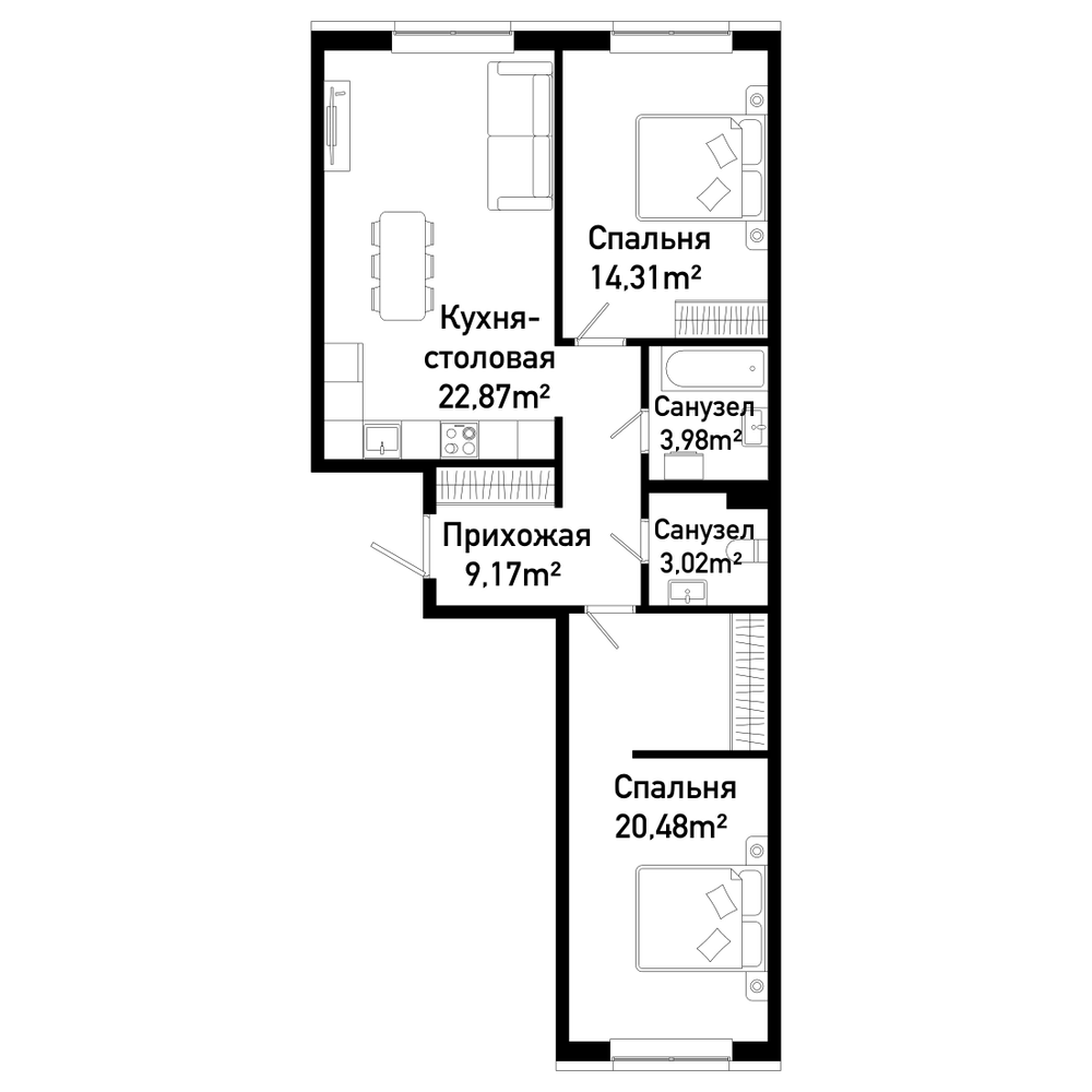 2-комнатная 69.6 м